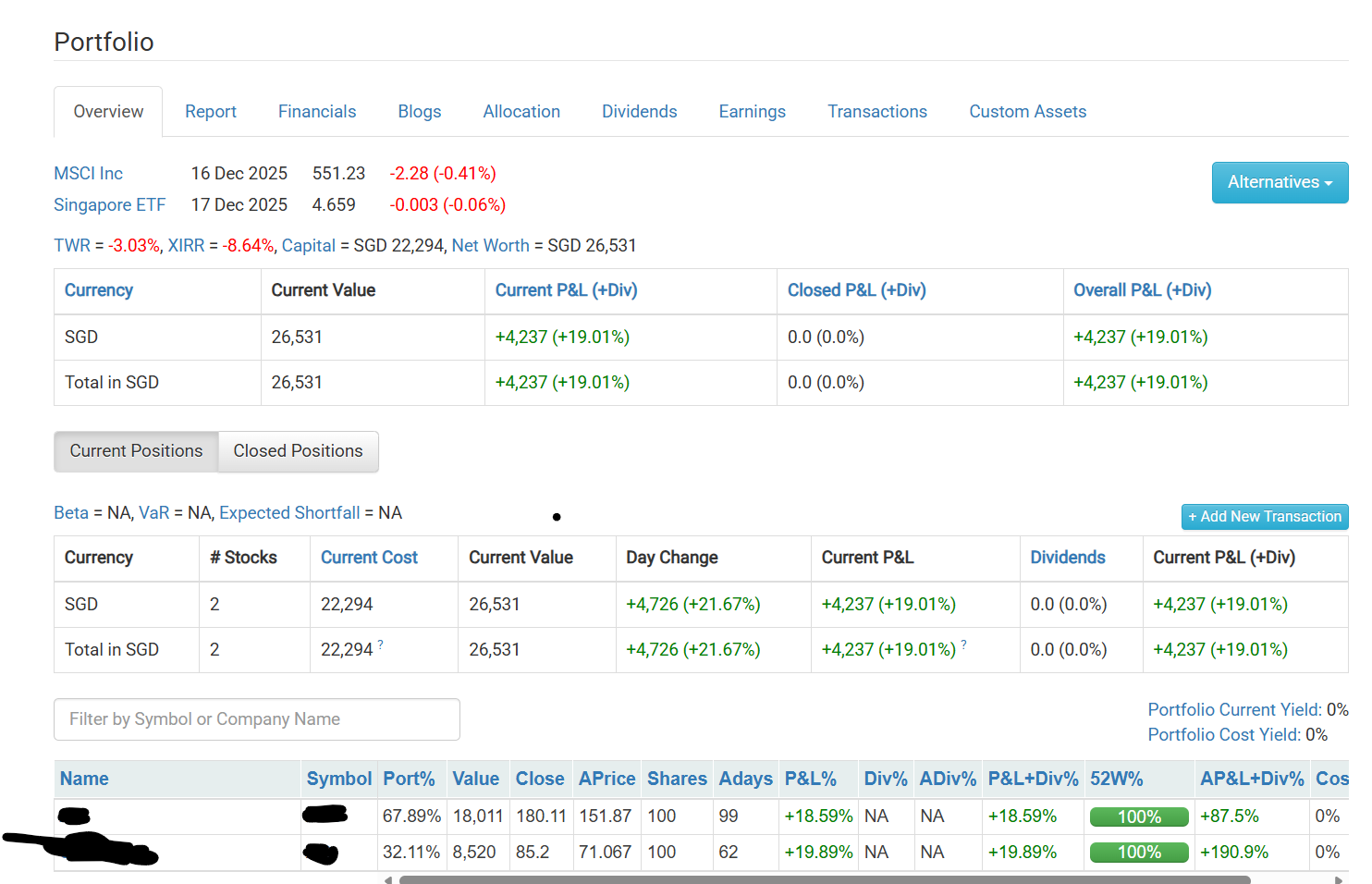 P&L numbers look correct. TWR and XIRR both negative, which does not seem right. Any advice on this? thanks