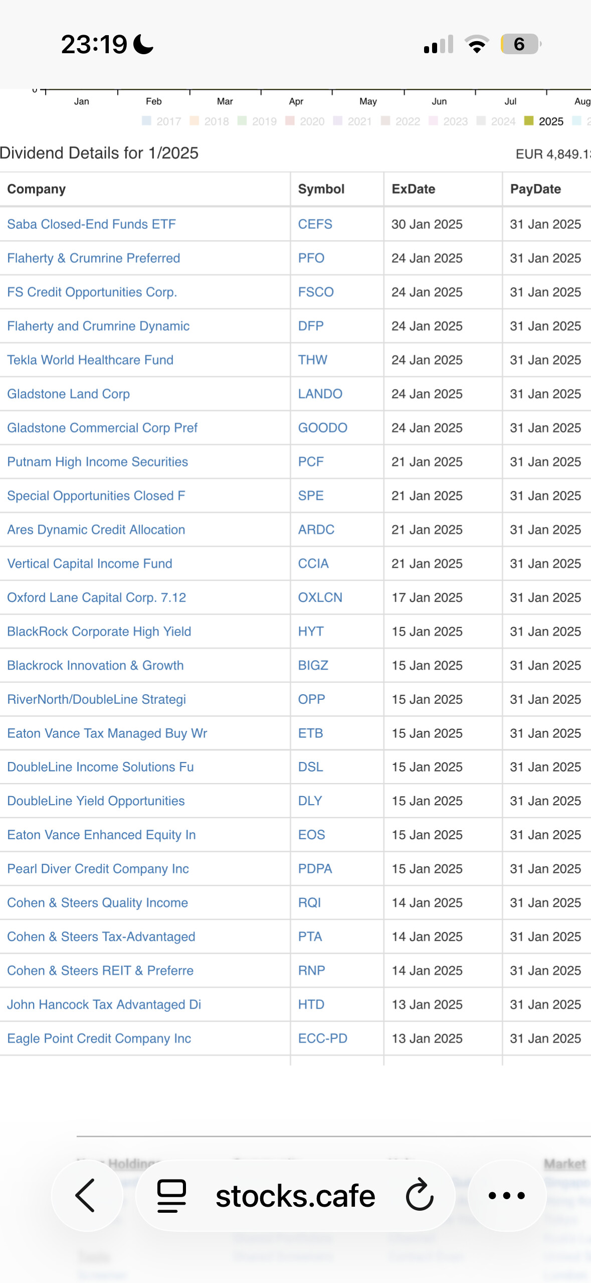 When I look at the graph of dividends for each month if I click on a particular month I see below the list of dividends. But it looks like that the number of row is fixed and limited and therefore only can see part of the total number of rows.