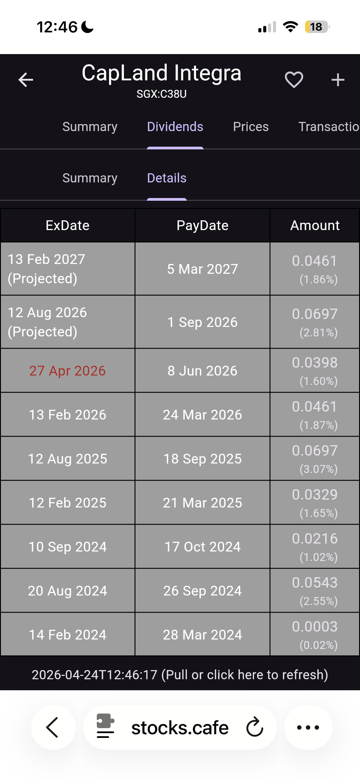 For CICT just need to adjust projected dividend ex date 12 August 2026 from 0.0697 to 0.0299 to account for advanced dividend ex date 27 April 2026.