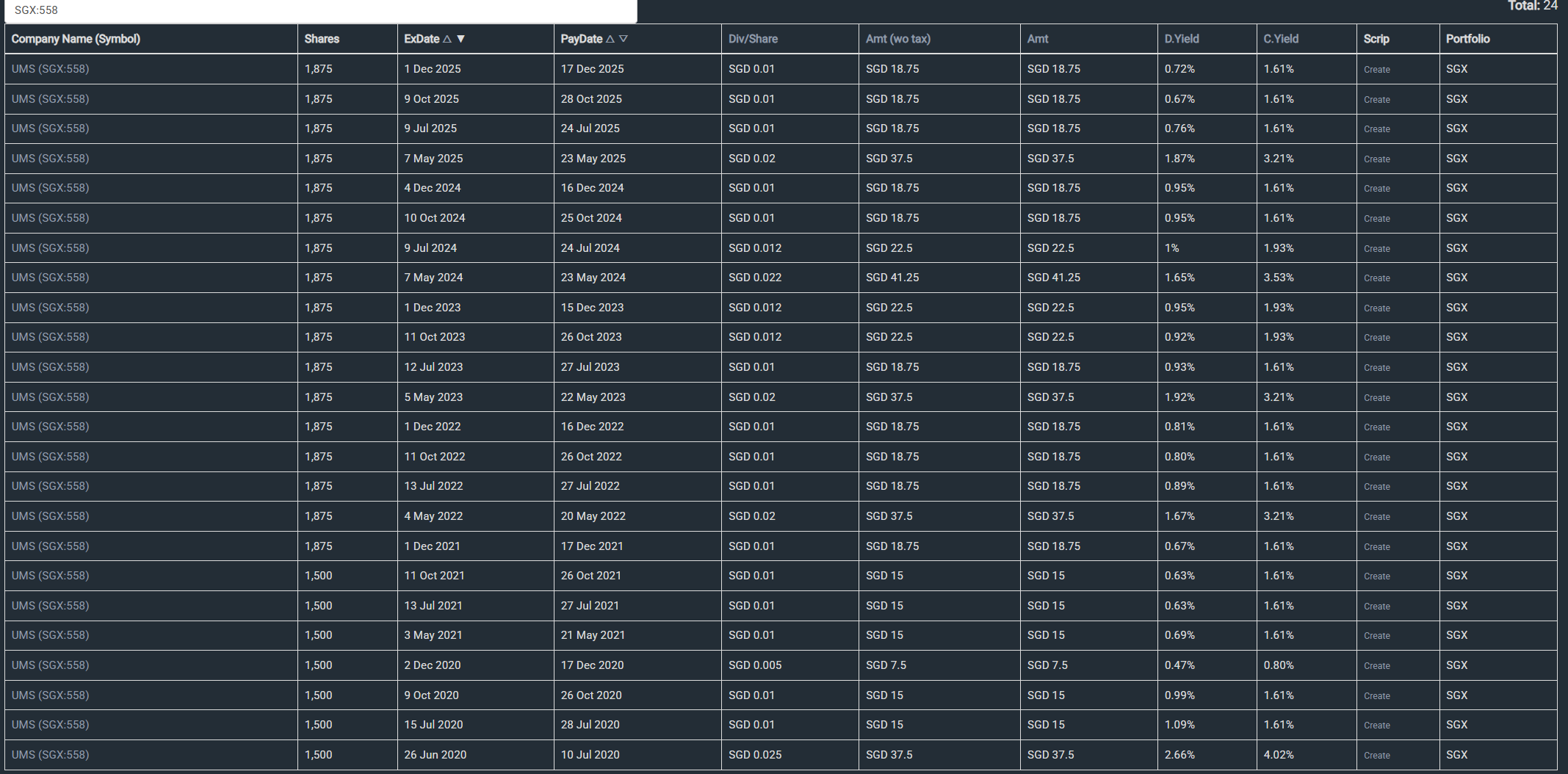 Looks like the dividends for a particular holding in my portfolio UMS is not being tracked as shown below: