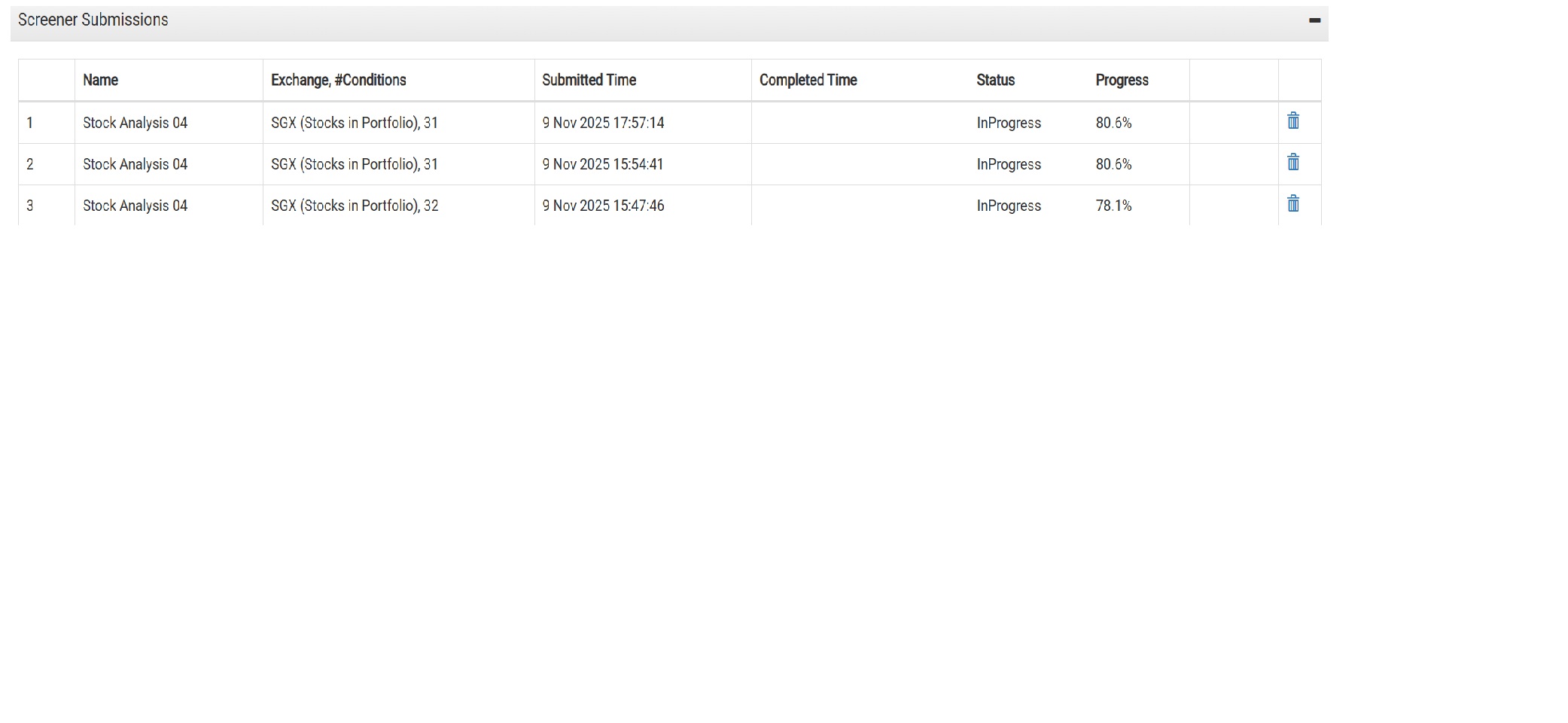 Could you please check out the screener functions as my screener runs are getting stuck at 75% mark and for some other screeners, they are not progressing at all.