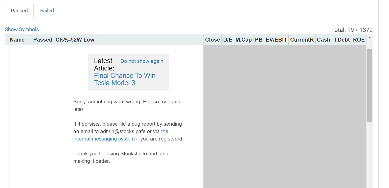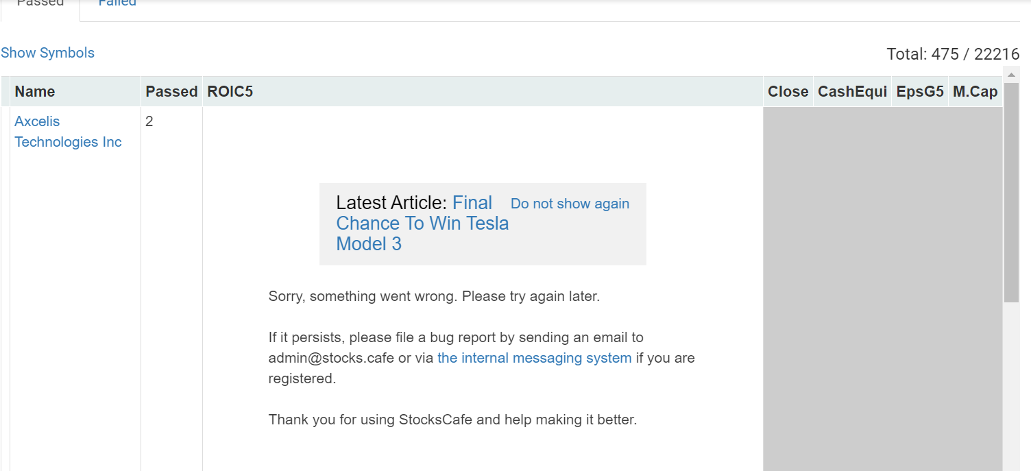 Seems like all my screener result submissions will have problems appearing, regardless when they were generated.